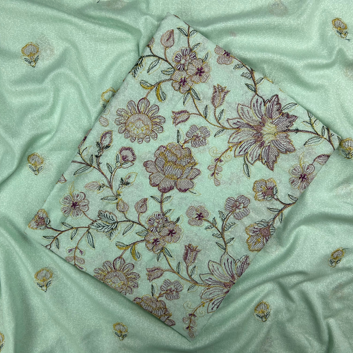 Expertly designed for the fashion-forward individual, our 2Pc Embroidered Jaal Lawn Karandi features intricate embroidery on the front and back, coupled with a comfortable lawn karandi trouser. Elevate your wardrobe with this elegant and versatile piece. 2.5mtr for Shirt and 2.5mtr for trouser
