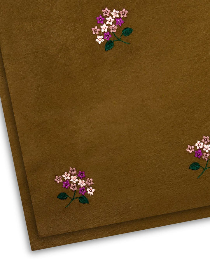 The allover trendy motif embroidery is done on Karandi on state of the art Multihead Embroidery machines.