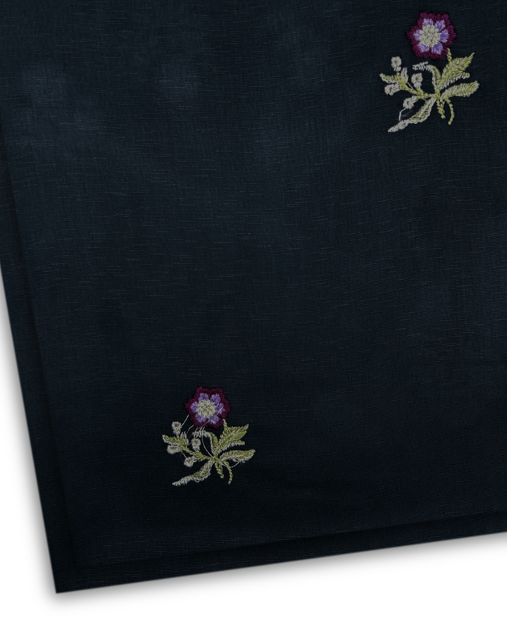The allover trendy motif embroidery is done on Karandi on state of the art Multihead Embroidery machines.