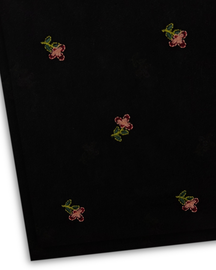 The allover trendy motif embroidery is done on Karandi on state of the art Multihead Embroidery machines.