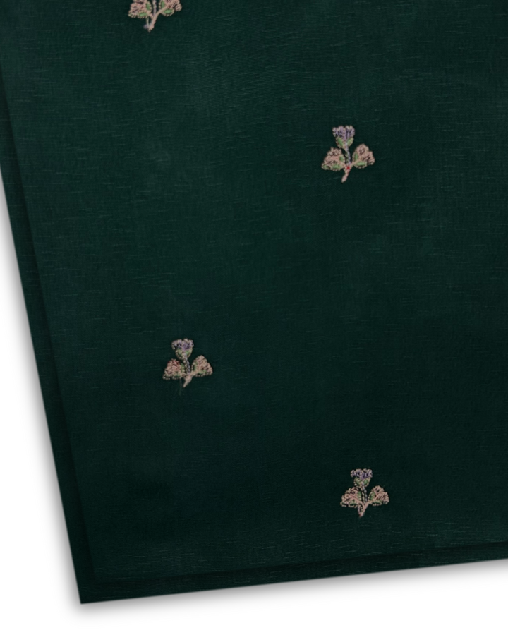 The allover trendy motif embroidery is done on Karandi on state of the art Multihead Embroidery machines.