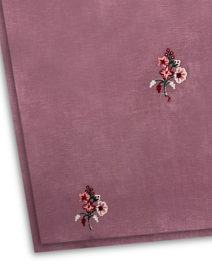 The allover trendy motif embroidery is done on Karandi on state of the art Multihead Embroidery machines.