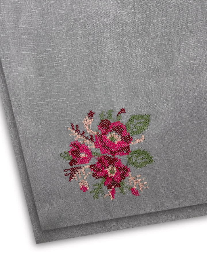 The allover trendy motif embroidery is done on Karandi on state of the art Multihead Embroidery machines.