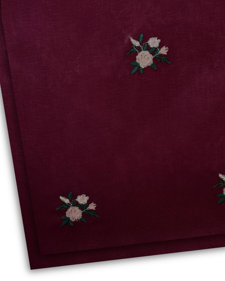 The allover trendy motif embroidery is done on Karandi on state of the art Multihead Embroidery machines.
