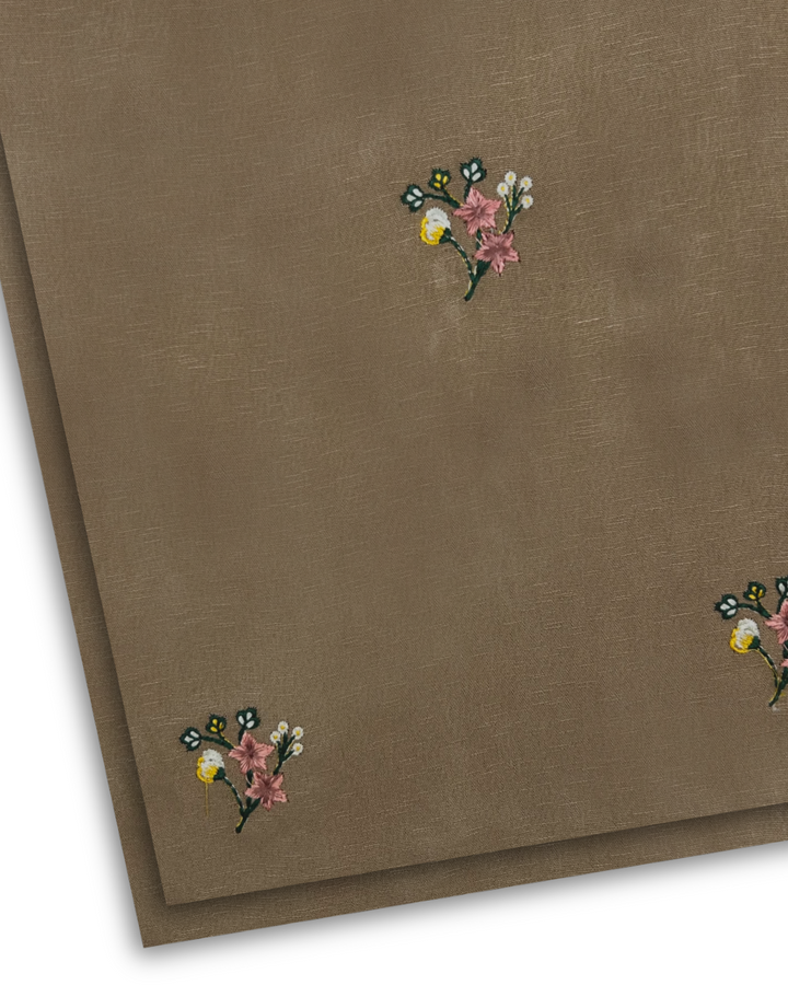 The allover trendy motif embroidery is done on Karandi on state of the art Multihead Embroidery machines.