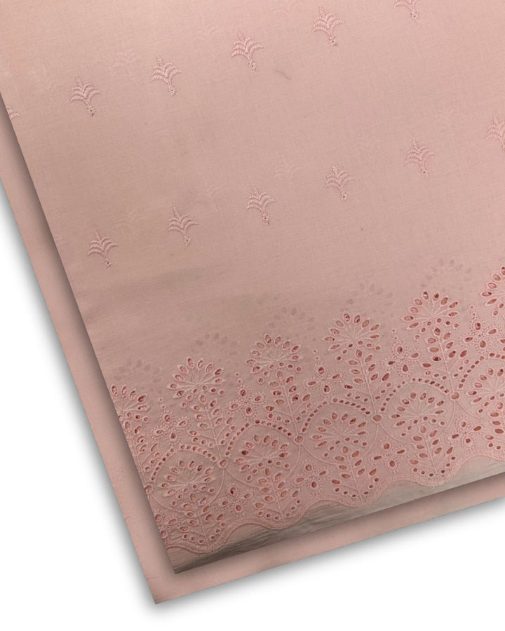 2Pc Schiffli Border Embroidered Lawn includes 2.5yards Schiffli Border Embroidered Lawn shirt with 2.5mtr plain cambric matching trouser.
