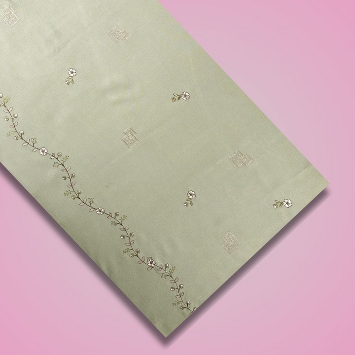 This elegant 3-piece set features a 2.5-meter Alpine embroidered shirt paired with 2.5 yards of plain Alpine trousers, delivering a balanced and sophisticated look. Completing the ensemble is a 2.5-yard shawl adorned with detailed Alpine embroidery along the border, adding a refined touch. Crafted to provide comfort and style, this set is ideal for formal occasions, offering a harmonious blend of intricate embroidery and classic fabric.