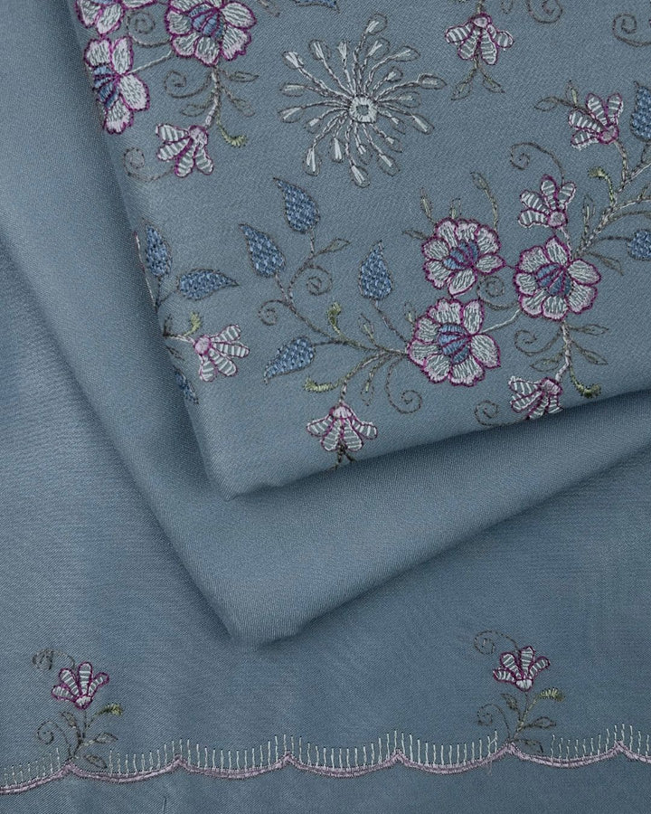 This elegant 3-piece set features a 2.5-meter Alpine embroidered shirt paired with 2.5 yards of plain Alpine trousers, delivering a balanced and sophisticated look. Completing the ensemble is a 2.5-yard shawl adorned with detailed Alpine embroidery along the border, adding a refined touch. Crafted to provide comfort and style, this set is ideal for formal occasions, offering a harmonious blend of intricate embroidery and classic fabric.