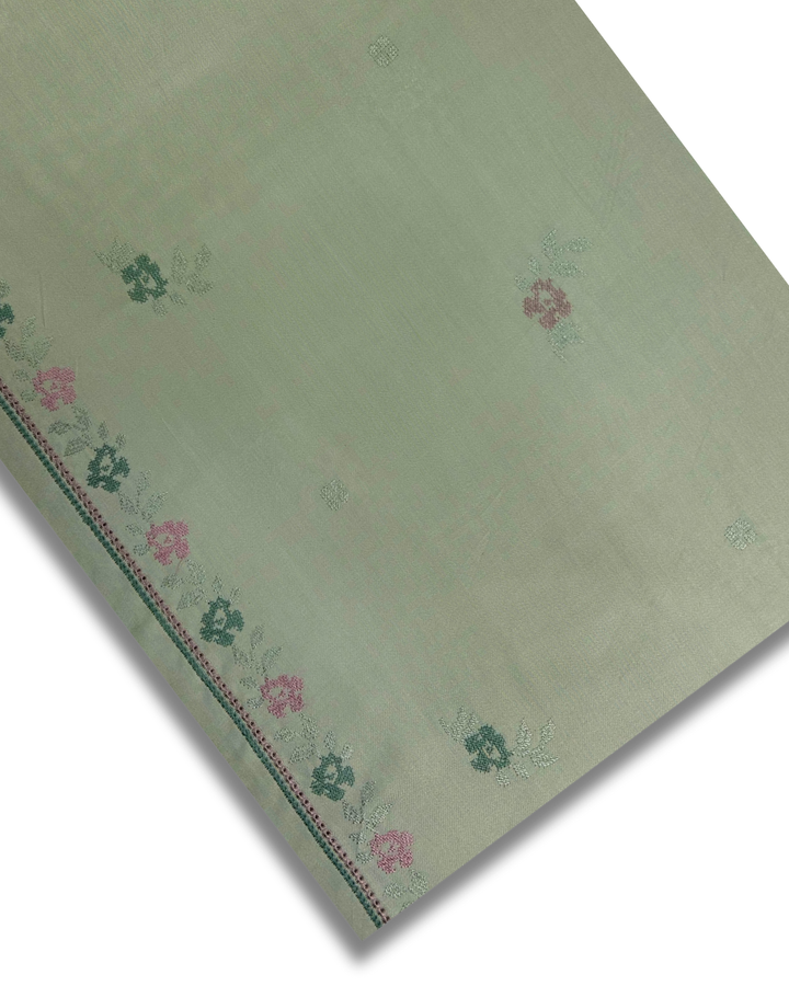 This elegant 3-piece set features a 2.5-meter Alpine embroidered shirt paired with 2.5 yards of plain Alpine trousers, delivering a balanced and sophisticated look. Completing the ensemble is a 2.5-yard shawl adorned with detailed Alpine embroidery along the border, adding a refined touch. Crafted to provide comfort and style, this set is ideal for formal occasions, offering a harmonious blend of intricate embroidery and classic fabric.