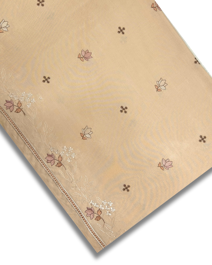 This elegant 3-piece set features a 2.5-meter Alpine embroidered shirt paired with 2.5 yards of plain Alpine trousers, delivering a balanced and sophisticated look. Completing the ensemble is a 2.5-yard shawl adorned with detailed Alpine embroidery along the border, adding a refined touch. Crafted to provide comfort and style, this set is ideal for formal occasions, offering a harmonious blend of intricate embroidery and classic fabric.