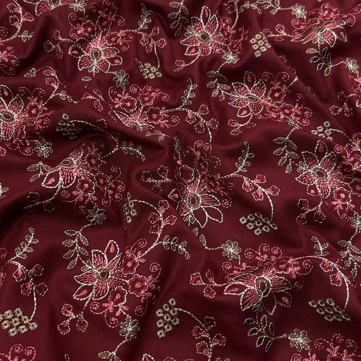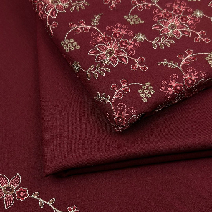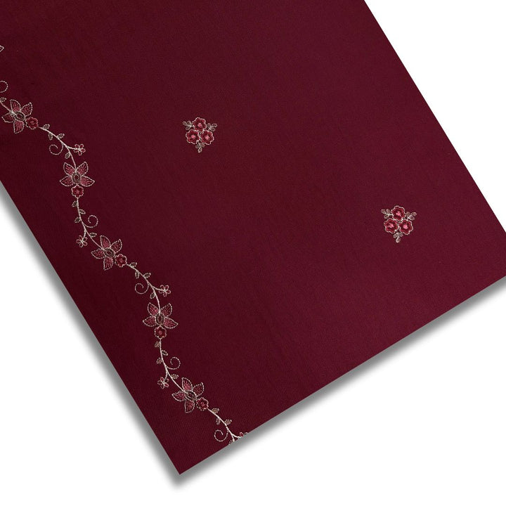 3Pc Alpine Embroidered With Embroidered Border Shawl Maroon AEBS-W25-0044