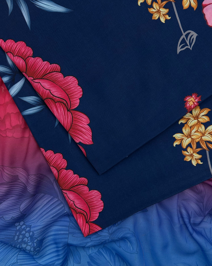 Arabic Silk Lawn is a premium blend of Cotton, silk, and polyester, offering a perfect combination of elegance and comfort. Ideal for all seasons, this fabric ensures you stay effortlessly chic year-round.