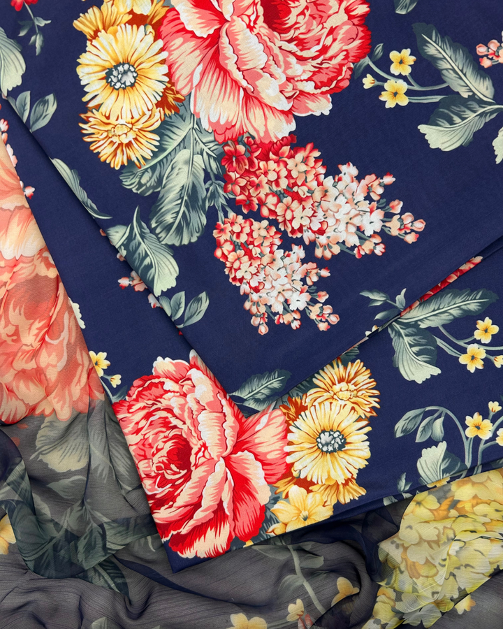 Arabic Silk Lawn is a premium blend of Cotton, silk, and polyester, offering a perfect combination of elegance and comfort. Ideal for all seasons, this fabric ensures you stay effortlessly chic year-round.