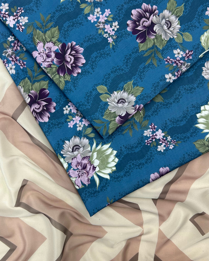 Arabic Silk Lawn is a premium blend of Cotton, silk, and polyester, offering a perfect combination of elegance and comfort. Ideal for all seasons, this fabric ensures you stay effortlessly chic year-round.