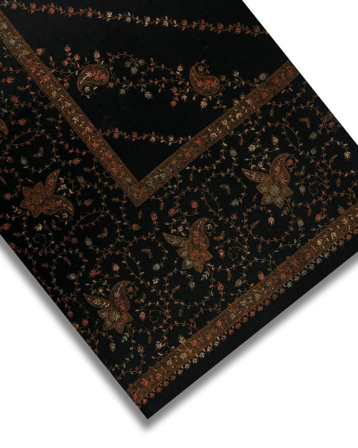 Cashmere Embroidered Shawls are not pure cashmere but a cashmere-feel blend of acrylic and viscose. This is a very practical choice — it gives the same soft, luxurious look and drape as pure cashmere, but at a much more affordable price point, with easier maintenance.