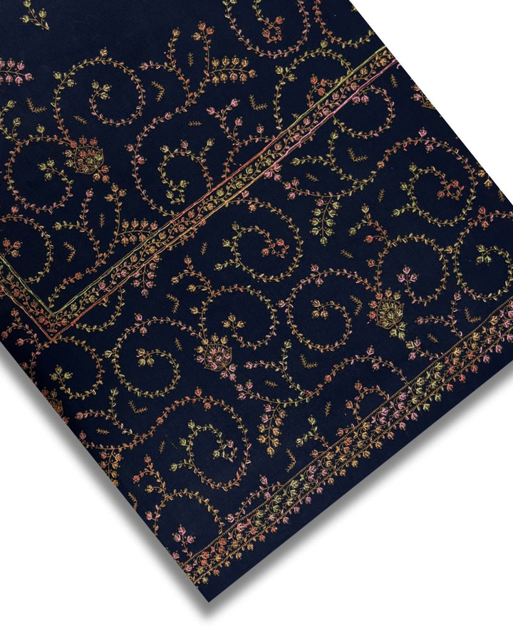 Cashmere Embroidered Shawls are not pure cashmere but a cashmere-feel blend of acrylic and viscose. This is a very practical choice — it gives the same soft, luxurious look and drape as pure cashmere, but at a much more affordable price point, with easier maintenance.
