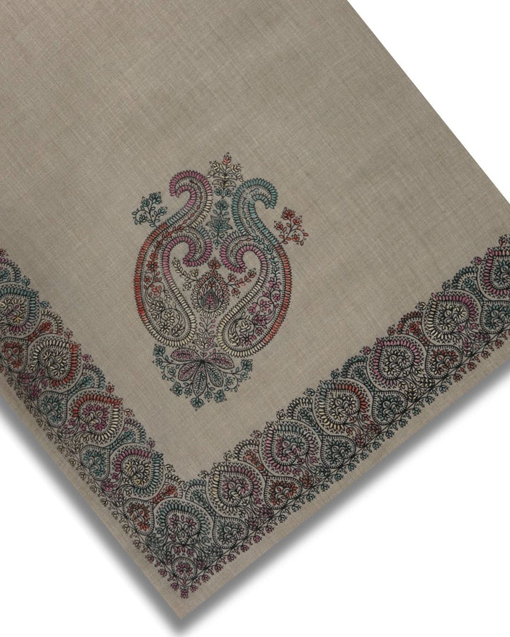 Cashmere Embroidered Shawls are not pure cashmere but a cashmere-feel blend of acrylic and viscose. This is a very practical choice — it gives the same soft, luxurious look and drape as pure cashmere, but at a much more affordable price point, with easier maintenance.