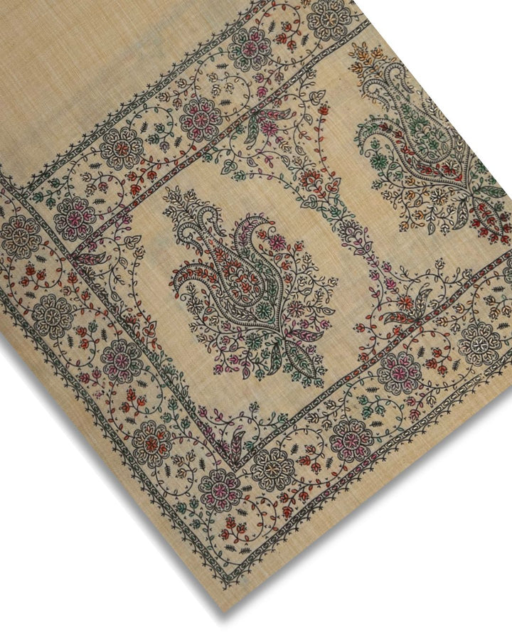 Cashmere Embroidered Shawls are not pure cashmere but a cashmere-feel blend of acrylic and viscose. This is a very practical choice — it gives the same soft, luxurious look and drape as pure cashmere, but at a much more affordable price point, with easier maintenance.