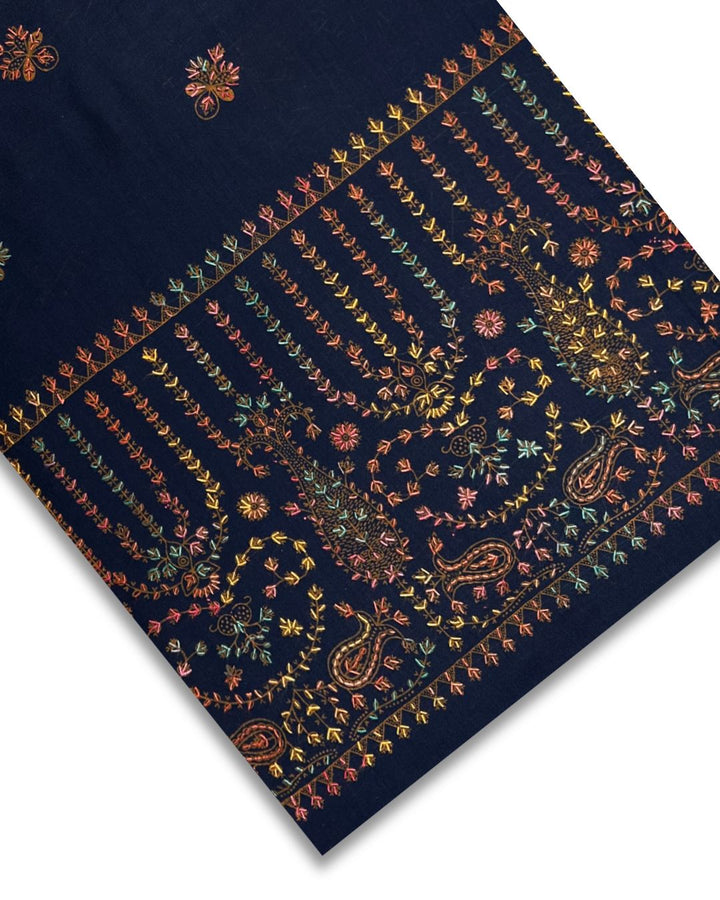 Cashmere Embroidered Shawls are not pure cashmere but a cashmere-feel blend of acrylic and viscose. This is a very practical choice — it gives the same soft, luxurious look and drape as pure cashmere, but at a much more affordable price point, with easier maintenance.