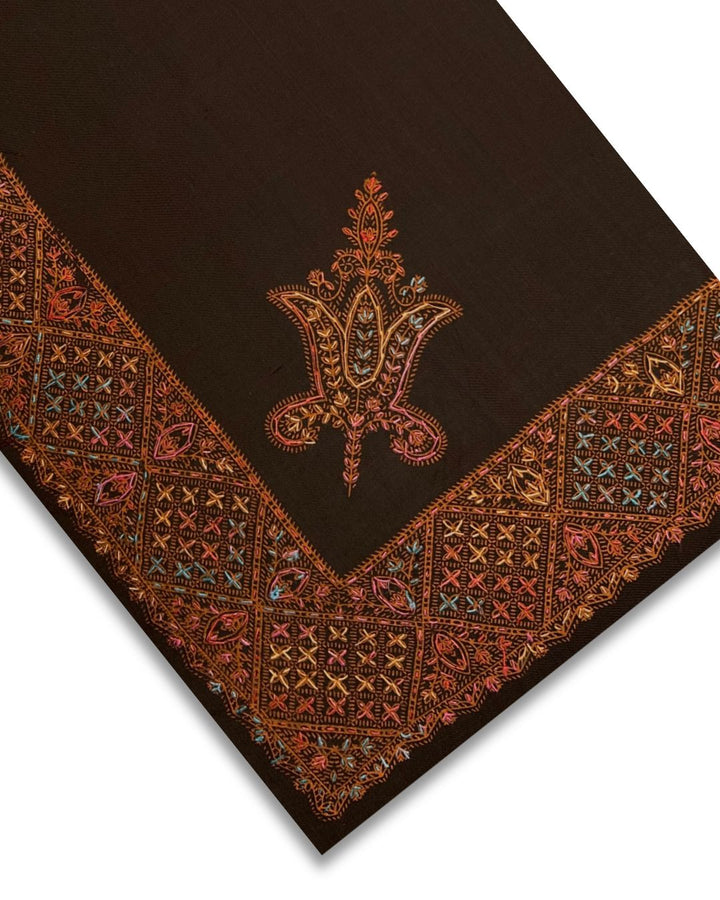 Cashmere Embroidered Shawls are not pure cashmere but a cashmere-feel blend of acrylic and viscose. This is a very practical choice — it gives the same soft, luxurious look and drape as pure cashmere, but at a much more affordable price point, with easier maintenance.
