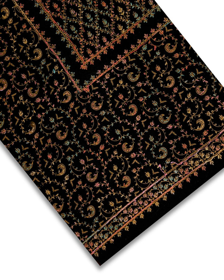 Cashmere Embroidered Shawls are not pure cashmere but a cashmere-feel blend of acrylic and viscose. This is a very practical choice — it gives the same soft, luxurious look and drape as pure cashmere, but at a much more affordable price point, with easier maintenance.