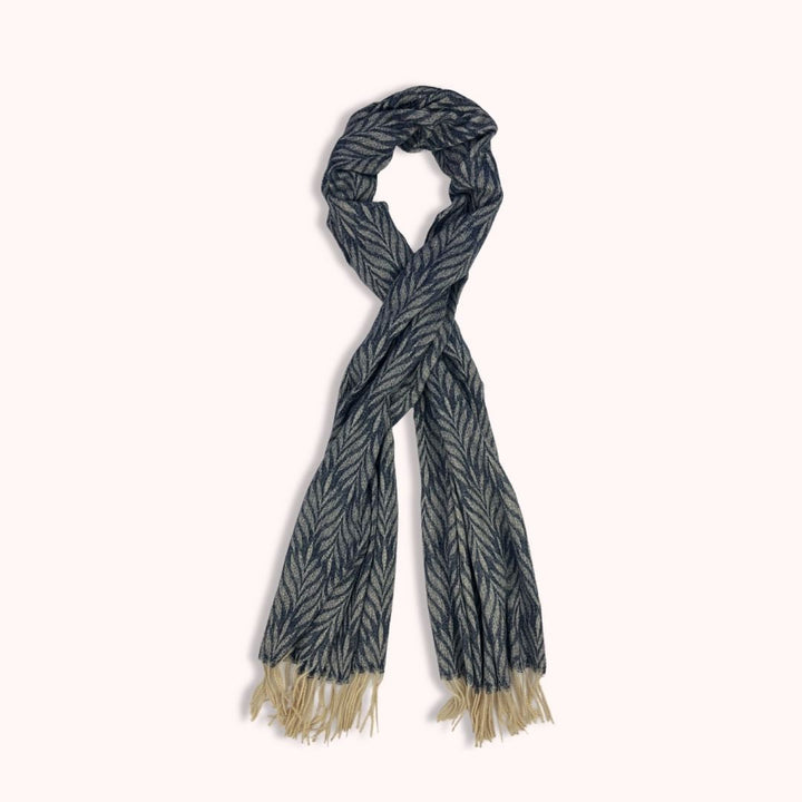 Designed with an intricate floral jacquard pattern in navy, gold, and silver tones, this stole embodies timeless sophistication. The soft fringed edges add a graceful finish, making it both cozy and stylish.