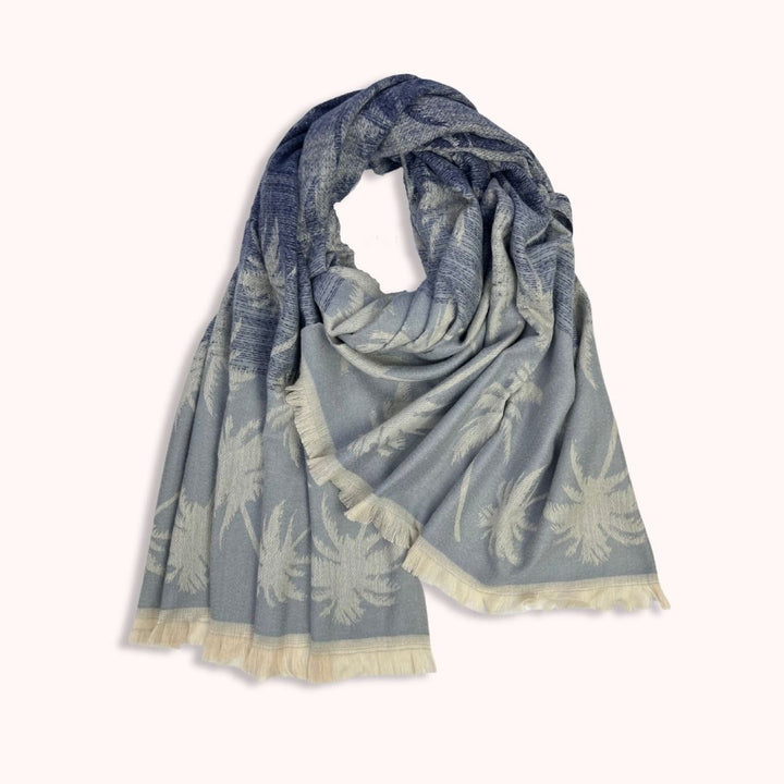 Designed with an intricate floral jacquard pattern in navy, gold, and silver tones, this stole embodies timeless sophistication. The soft fringed edges add a graceful finish, making it both cozy and stylish.