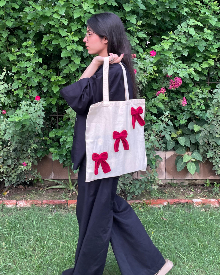 Carry love wherever you go with our handcrafted crochet-inspired tote bag, designed with care and creativity. Made from durable, eco-friendly fabric, this bag is adorned with charming hand-stitched Motifs that add a playful yet stylish touch to your everyday look.