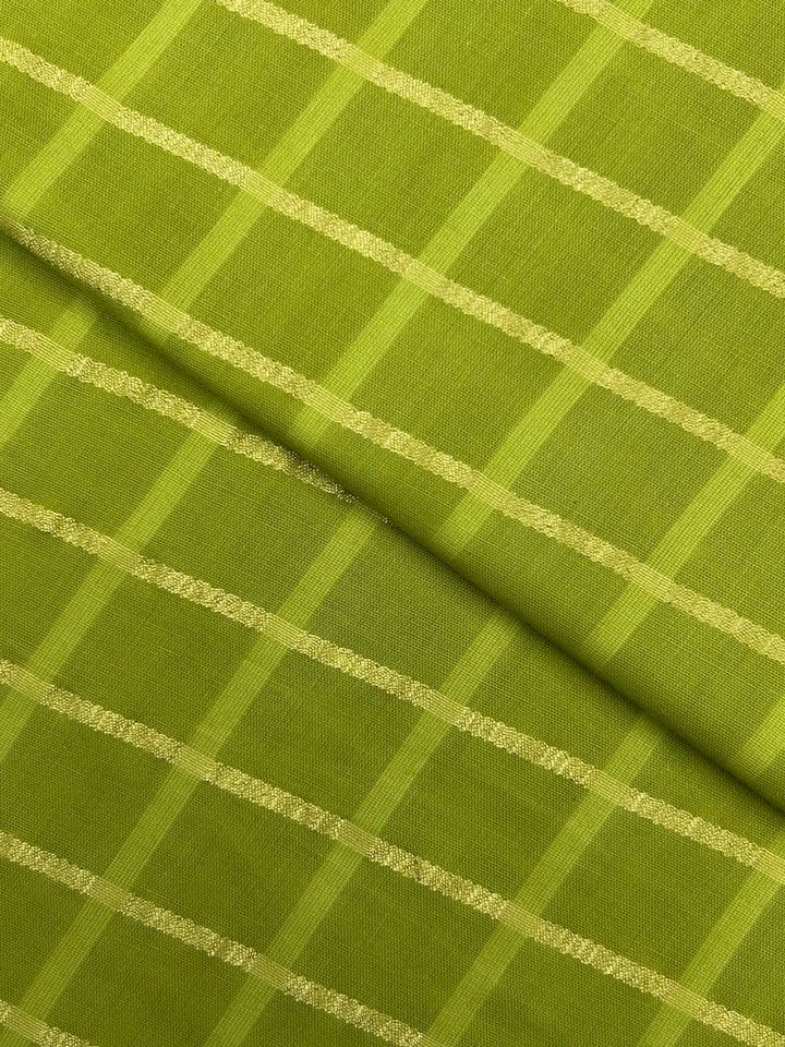 - Cotton Jacquard Maisuri is a blend of cotton and viscose. The warp yarn is 100% cotton and the weft golden yarn is viscose. The fabric width is 40 inches.